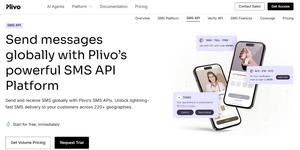 Plivo provides SMS and voice APIs with support for OTP and authentication use cases. It also offers mobile push authentication as an alternative verification method. Plivo is known for competitive global SMS pricing and developer-friendly integration. It is commonly chosen by startups and growing businesses that need scalable communication APIs.