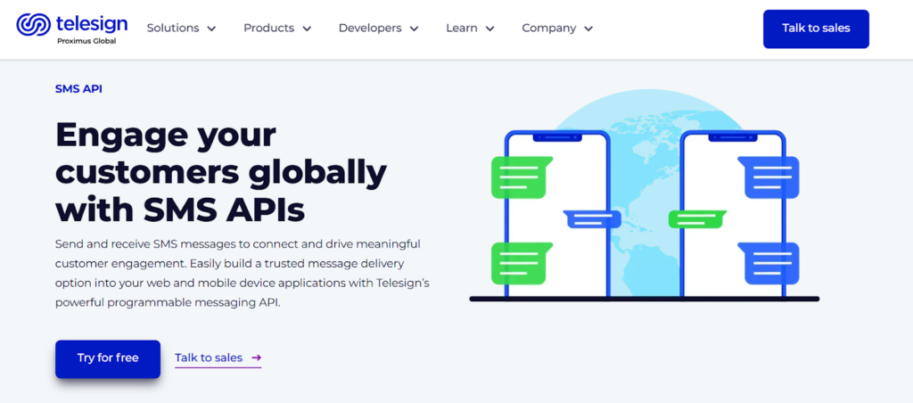 Telesign provides an SMS Verify API focused on secure OTP delivery for 2FA. It supports SMS, voice, and additional verification channels. Telesign is known for combining messaging with identity verification and fraud detection capabilities, making it suitable for businesses that prioritize risk assessment.