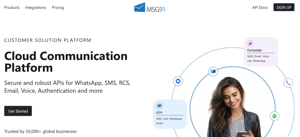 MSG91 offers SMS OTP along with email, voice, and WhatsApp APIs. It provides dedicated account management and localized support, especially for Indian startups and SaaS businesses. Pricing varies by channel and region. MSG91 is often chosen for cost-effective OTP delivery and multi-channel communication.