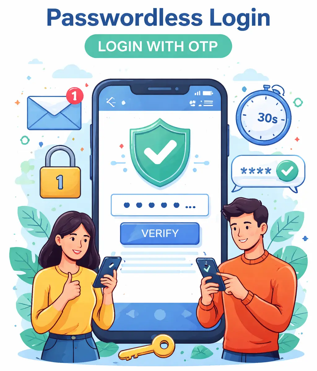 Passwordless login is more secure than traditional passwords because it removes risks like password reuse, phishing, and credential theft. OTPs are time-bound and cannot be reused.